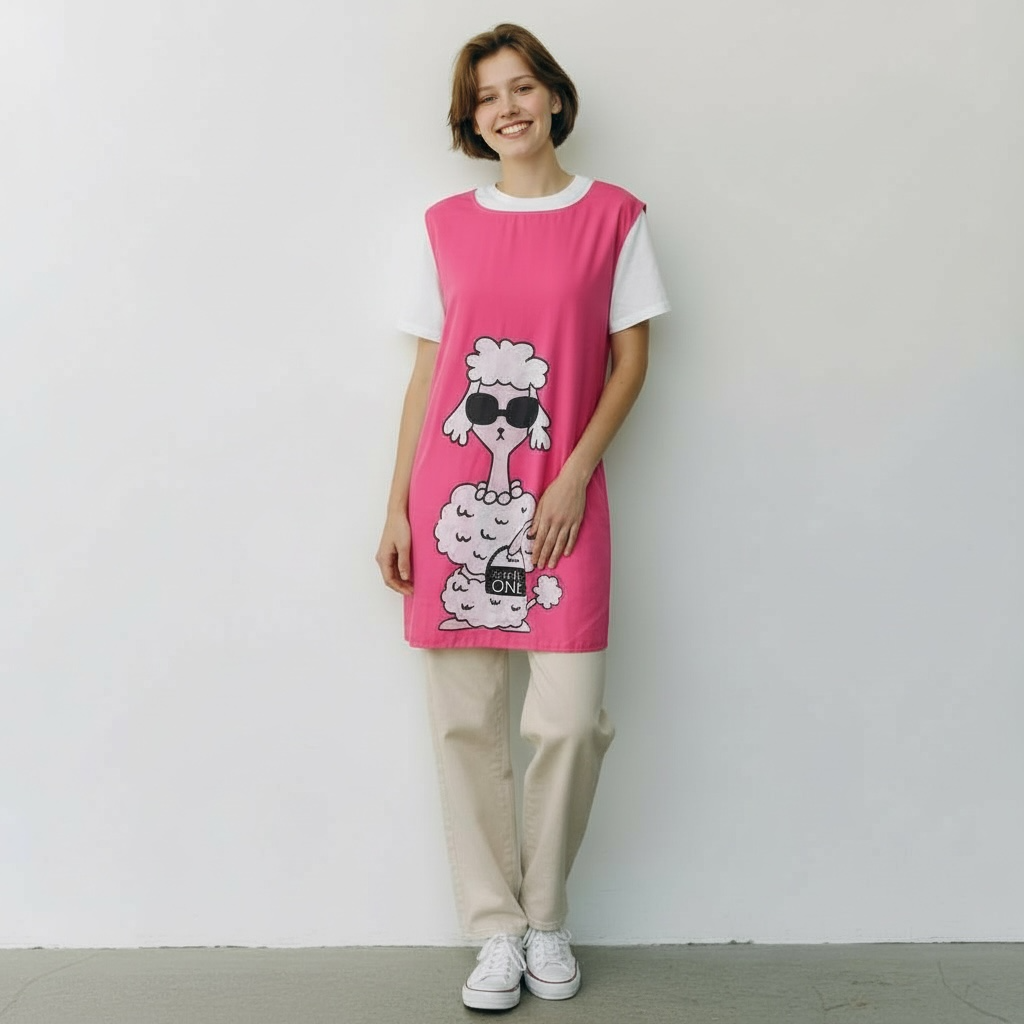 APRON CARTOON POODLE PINK