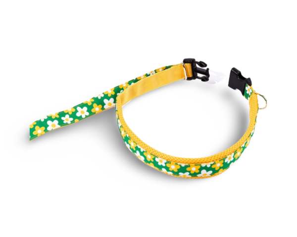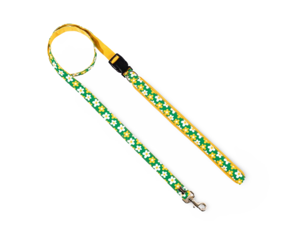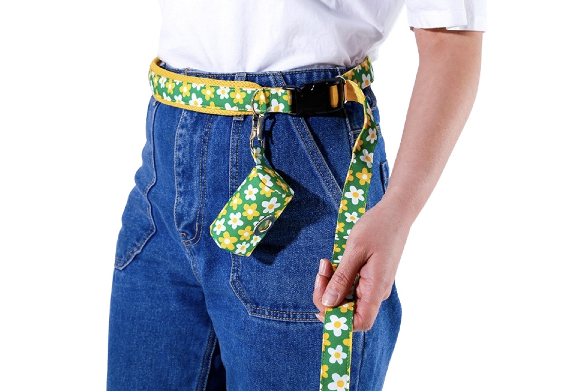 Design con motivo floreale. Tessitura in nylon stampato (450D) con cuciture molto resistenti, accessori e fibbie realizzati in materiali adatti per cani di grande taglia (superiore 7 kg). Può essere indossato come una cintura intorno alla vita per gestire comodamente i cani di grossa taglia e può essere legato ad alberi o pali. Una maniglia secondaria sull’amo offre un controllo rapido. L’interno della maniglia è rifinito con un tessuto a maglia spessa, rendendola morbida e resistente al sudore della mano.