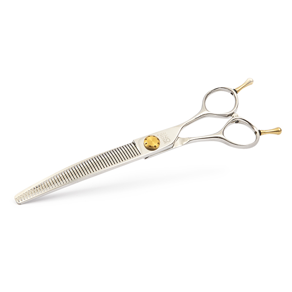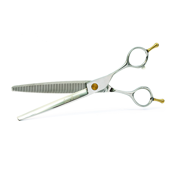 Il modello “SaurMoon”, con le sue lame dentate curve da 7″ e 46 denti, rappresenta un must-have per i groomer professionisti che cercano strumenti di alta precisione e versatilità. Progettate per sfoltire e modellare mantelli fini e molto fini, ricci o lisci, queste forbici offrono un taglio uniforme e naturale, eliminando i segni netti e donando un aspetto impeccabile. Dentatura media per sfoltire al 90%: I denti fitti con piccoli spazi tra loro permettono un taglio rapido ed efficace, ideale per mantelli delicati senza lasciare segni visibili.  La curvatura delle lame segue le linee naturali del corpo dell’animale, rendendo queste forbici perfette per lavorare su aree difficili da raggiungere, della testa, zampe e contorni. Impugnatura reverse ergonomica, garantisce comfort e controllo, permettendo di girare facilmente le forbici per tagliare da entrambi i lati senza perdere equilibrio o precisione. Modello ben bilanciato, progettato per ridurre l’affaticamento durante l’uso prolungato,  ideale per groomer che desiderano uno strumento efficiente e confortevole.